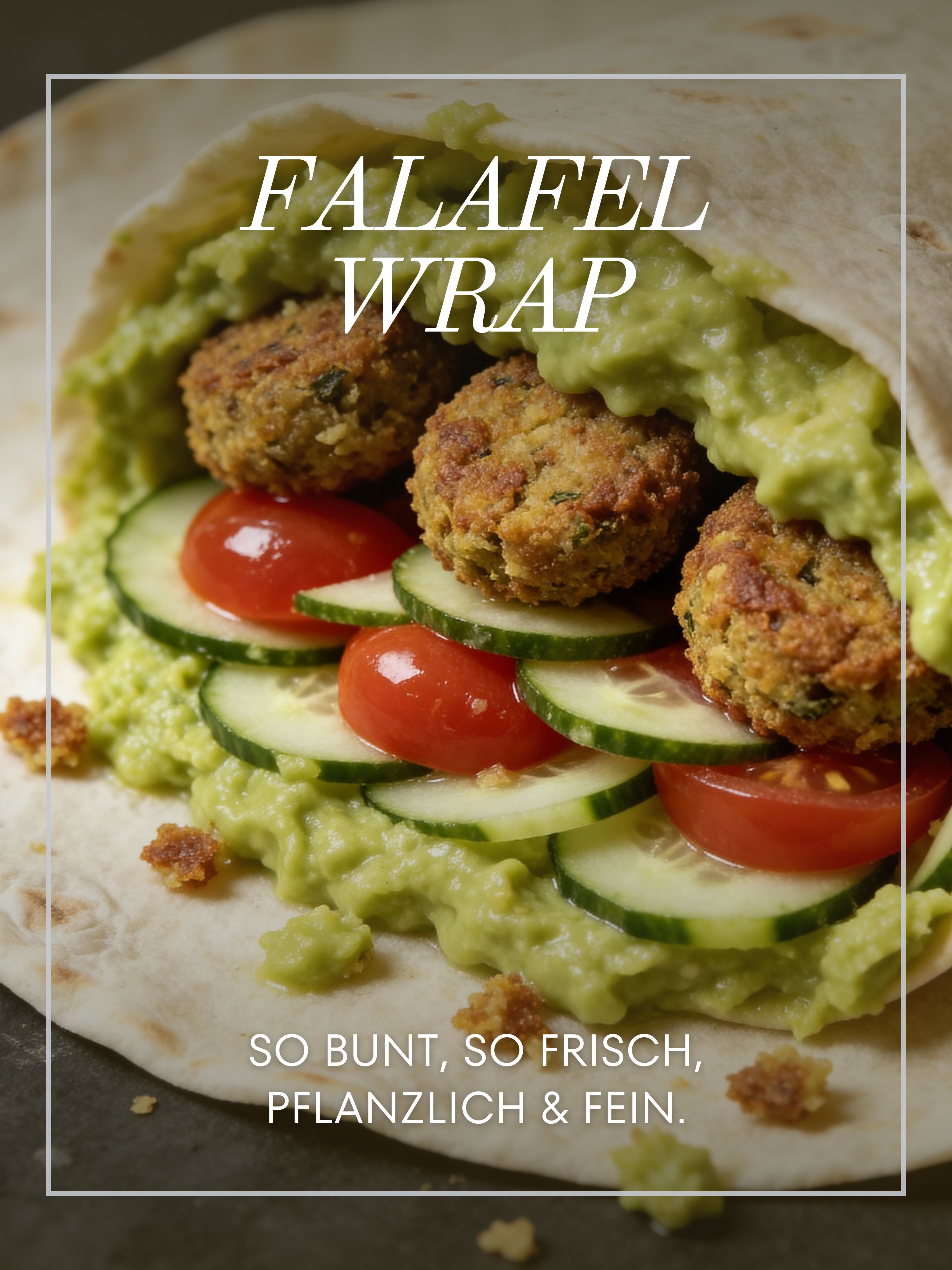 hausgemacht mit Frühlingszwiebeln, Tomaten, Gurke, Granatapfeldressing & drei Falafel